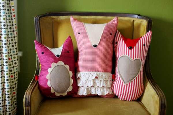 6. Украшать диванные подушки можно так, как душе угодно. Например, сделать интересные нашивки, пришить смешные ушки и ручки, сделать игрушку-примитив и многое-многое другое: