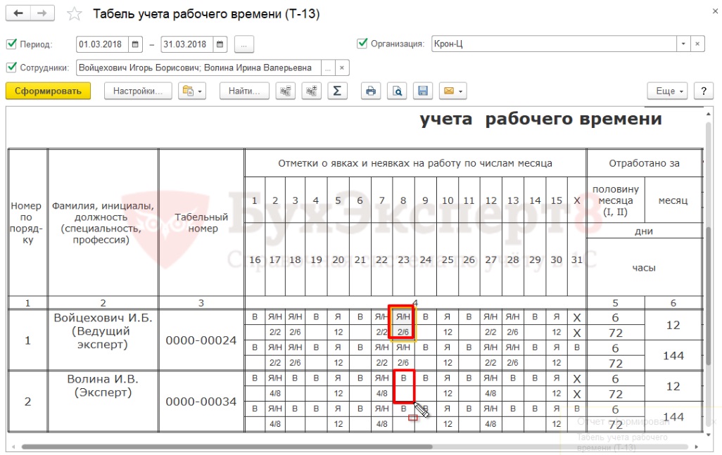 Формат заполнения табеля рабочего времени в Т-13