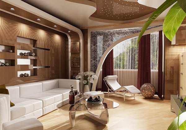 Современные дизайнеры наличие выхода из гостиной на балкон относят к важным достоинствам. Увеличить площадь такого помещения не составит труда. Поможет в этом выполненная перепланировка. Если нет возможности ее провести, то обустройство лоджии и комнаты должно проходить согласно одному выбранному стилю. Таким образом, визуально периметр расширится, полезная площадь увеличится.
