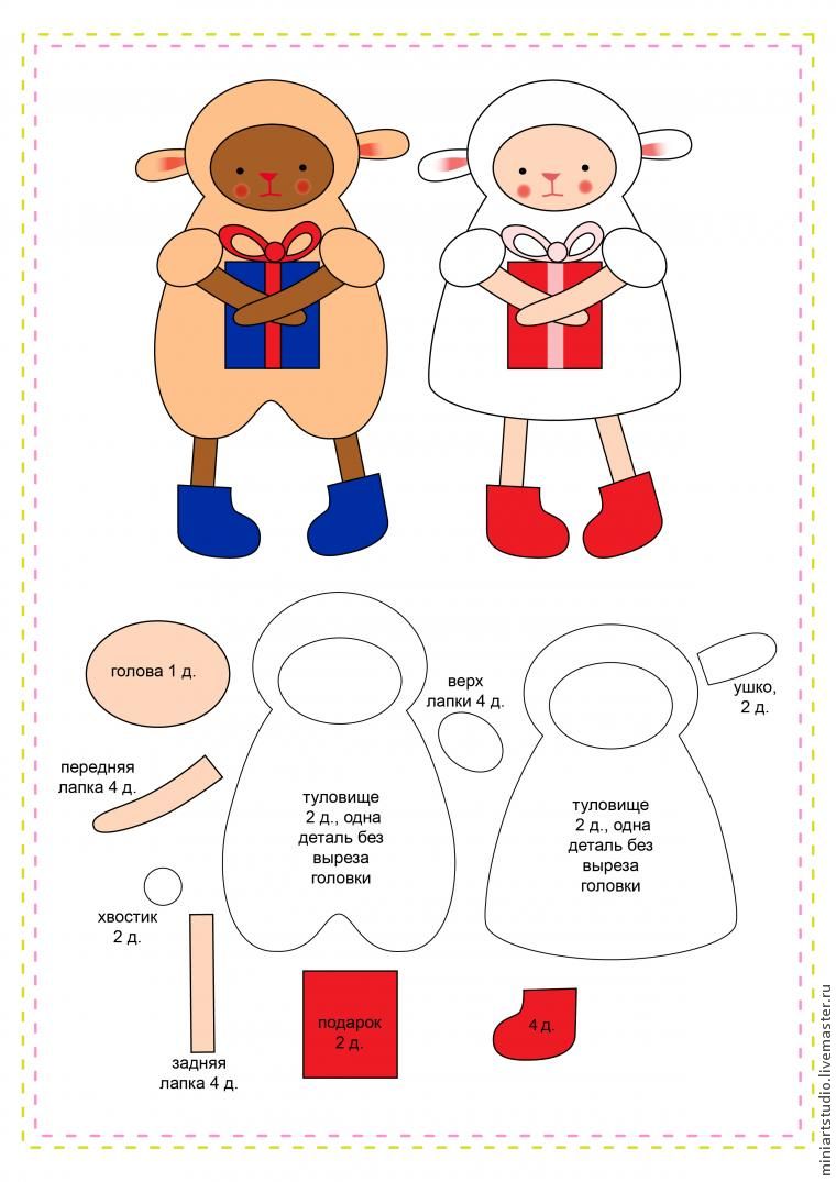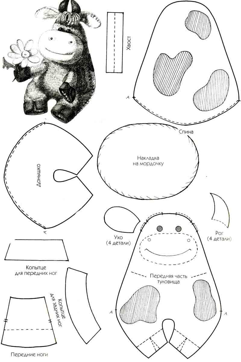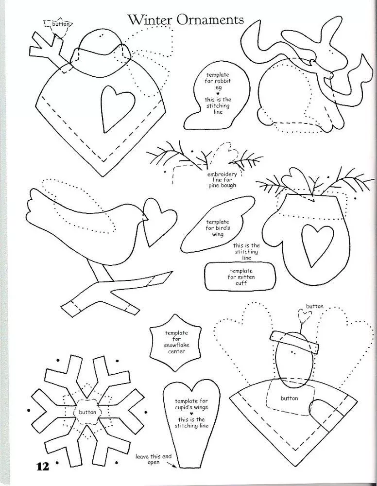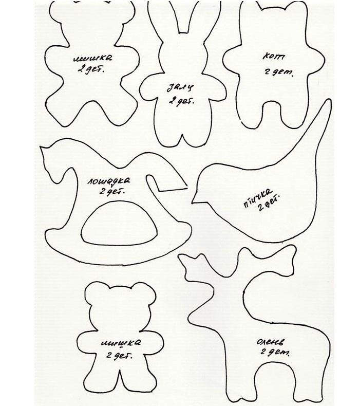 Чтобы сделать игрушку по этим трафаретам просто сшиваем вырезанные детали вместе и украшаем их. Подробнее читайте в мастер-классах ниже.