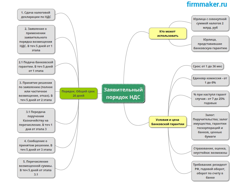 Суть этого порядка заключается в том, что налог возвращается еще до конца камеральной проверки, а если по ее результатам принято решение об отказе в возмещении НДС, налогоплательщик обязан вернуть налог обратно в бюджет. Право на возмещение НДС в заявительном порядке имеют, например:. Чтобы воспользоваться таким своим правом необходимо подать в ИФНС соответствующее заявление не позднее 5 рабочих дней со дня подачи декларации по НДС п. Заявление на возврат НДС налогоплательщик может подать в налоговую инспекцию как в письменной, так и в электронной форме по телекоммуникационным каналам связи. В последнем случае заявление на возврат НДС подписывается усиленной квалифицированной электронной подписью п.