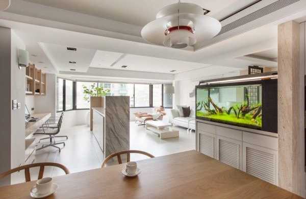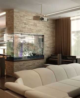 Нередко аквариум дизайнеры используют как элемент зонирования комнаты.