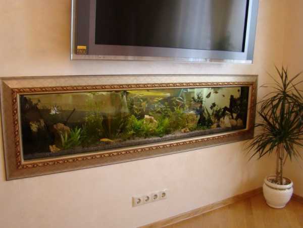 Встраиваемого вида. Еще одним приемлемым видом для малых гостиных является встраиваемый аквариум, который встраивается в мебель или в нишу в стене.