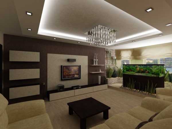 Аквариум в гостиных, выполненных в разных стилях