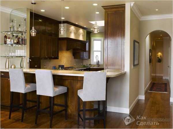 Еще пару десятков лет назад многие видели барную стойку только в специальных заведениях (кафе, рестораны). Но уже сегодня каждый уважаемый себя хозяин, делая ремонт кухни, просто обязан задуматься о сооружении бара на кухне.