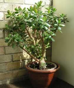 - Денежное дерево. Прозвано толстянкой. На самом деле, это не совсем дерево, растение относится к роду кактусов. Но очень красиво украшает интерьер. Толстянка хорошо переносит засуху, поэтому отсутствие полива ее не напугает. Любит свет, но не прямые лучи. В домашних условиях экс-дерево растет медленно, а в родных условиях быстро, может достигать до 8 метров.