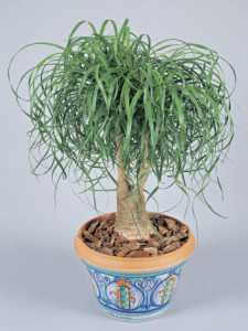 Это растение, не заставит вас чувствовать себя виноватым, когда вы отправитесь в отпуск. Оно хранит влагу в своей луковичной основе и может долгое время обходиться без воды. Этот вид также ценится за его каскадные, листья, которые никогда не увядают даже в жёстких условиях. Бокарнея относится к медленнорастущим растениям, поэтому, если вам нужно размерное дерево, купите самое большое растение, которое вы можете найти. В помещении они вырастают до почти до 2 метров. Лучшим местом для него является окно, обращённое к востоку или западу.