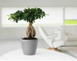 Это деревце в миниатюре. Выращивая его, берут за основу обычное дерево и придают ему нужную форму, систематически подрезая. Растение довольно капризное и уход за ним долгое, кропотливое дело, но результат будет просто великолепным. Бонсай наполнит дом захватывающим видом миниатюрного ландшафта.