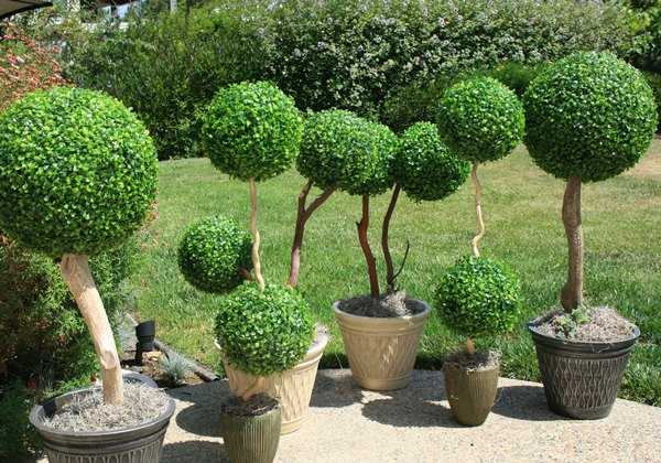- Самшит. Этому дереву не страшны любые невзгоды. Его можно высаживать в саду, при этом в холодный период не забирать в дом. Он прекрасно переносит различные погодные условия. Полив для него важен, но, если вы случайно забудете это сделать, ничего страшного не произойдет. Маленький недостаток самшита, он медленно растет в комнатных условиях.