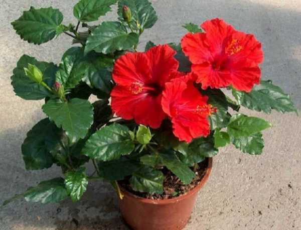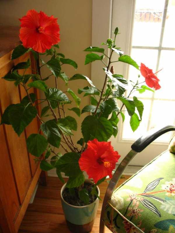 Китайская роза (гибискус). Из маленького отростка может вырасти целое дерево, которое будет радовать своими яркими цветами различных оттенков. Из-за своей неприхотливости гибискус часто становится жителем различных государственных учреждений, например, поликлиник и библиотек. Летом гибискус нужно поливать не реже двух раз в неделю. Если листья начинают увядать — количество поливов нужно увеличить. Пышной китайская роза будет, если периодически прищипывать верхушки боковых веточек. Лучше всего держать цветок в светлом месте, но не под прямыми солнечными лучами.