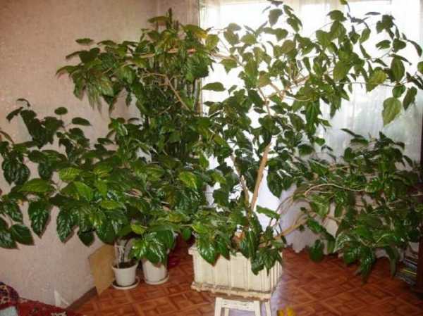 Кофейное дерево. В комнатных условиях кофейное дерево обычно вырастает высотой до 1,5 м, но при надлежащем уходе и просторном помещении его высота может достигать и 3 м. Кофейное дерево очень боится сквозняков, но предпочитает хорошо проветриваемые помещения. Не терпит соседства ни с одним из комнатных растений. Очень любит яркий рассеянный свет и частые опрыскивания теплой водой. Поливать кофейное дерево следует умеренно, но не дожидаясь, пока подсохнет верхний слой почвы.