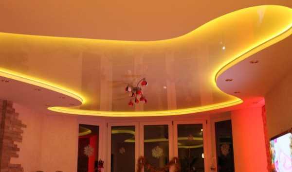 Двухуровневые натяжные потолки со светодиодной подсветкой: фото примеров реализации