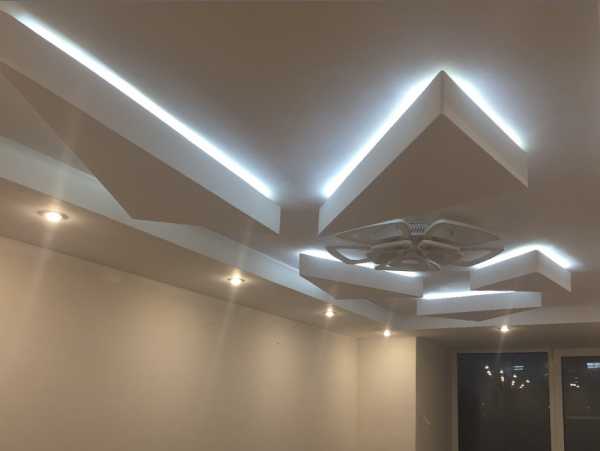 Двухуровневый потолок из гипсокартона с подсветкой (23 фото, видео)