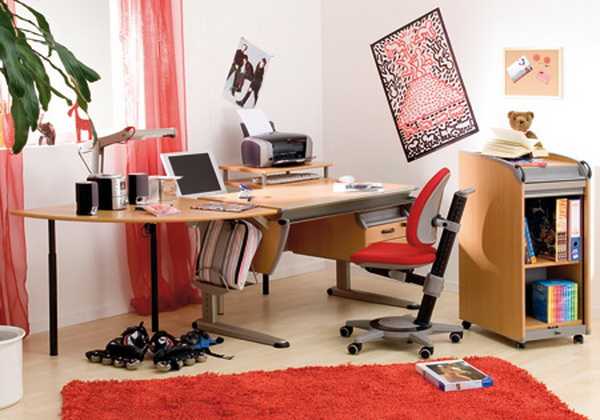 Большую часть времени подросток проводит за рабочим столом, занимаясь на компьютере или готовя уроки. Поэтому очень важно уделить особое внимание при оборудовании этой функциональной зоны.