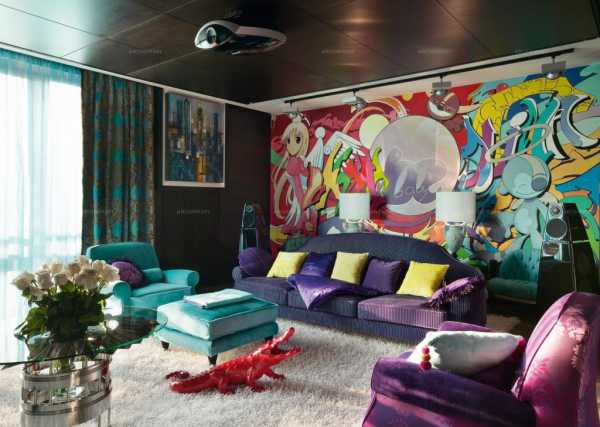 Авангард характеризуется асимметричной геометрией и контрастами. Этот стиль динамичен, экспрессивен и насыщен яркими цветами. Сгладить агрессивность смелых оттенков можно при помощи белого цвета в отделке.