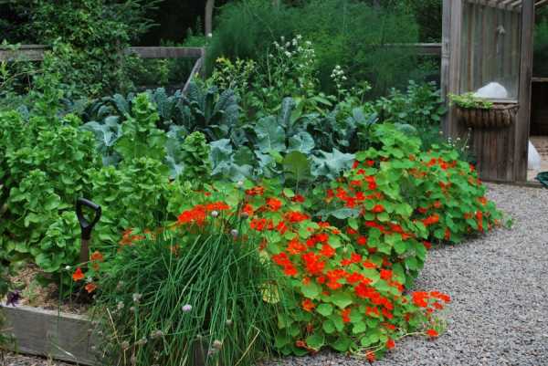 - в этом красивом огороде в форме круга растут овощи для вкусных летних салатов — расположите салатный огород неподалеку от дачной кухни, и он порадует хозяйку не только изяществом, но и практичностью;