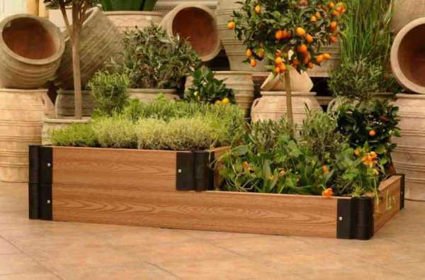 Интересная идея грядки с горизонтальными бортиками площадками, на которые можно, например, поставить какую-то посудину, леечку и т. п. Удобная утилитарная приспособа, которая поможет в хозяйстве.