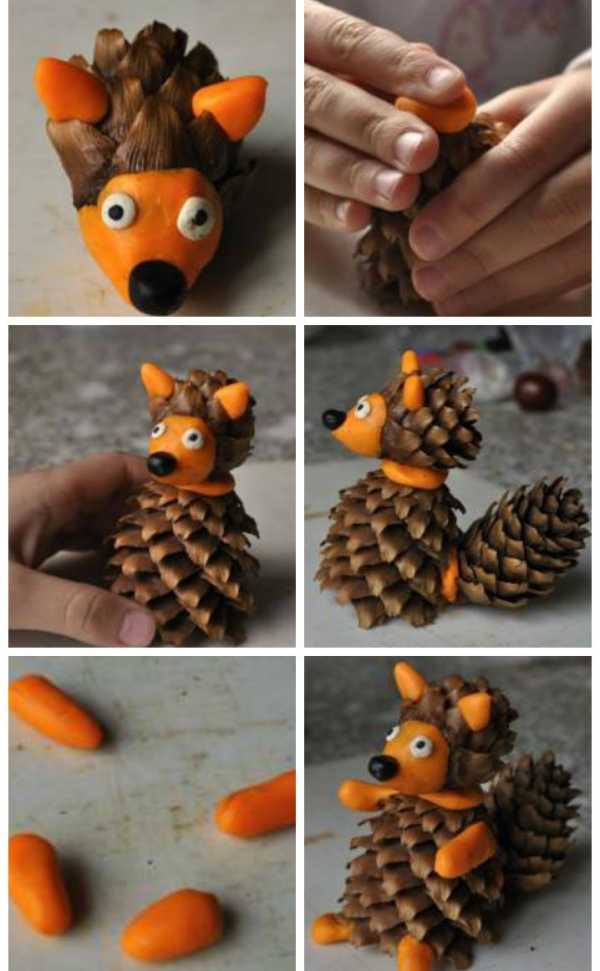 Сосновые шишки замечательно подойдут что бы делать детские поделки из шишек и пластилина, например забавных зверушек, лисичек, ежиков, медвежат и других персонажей сказок и мультфильмов.