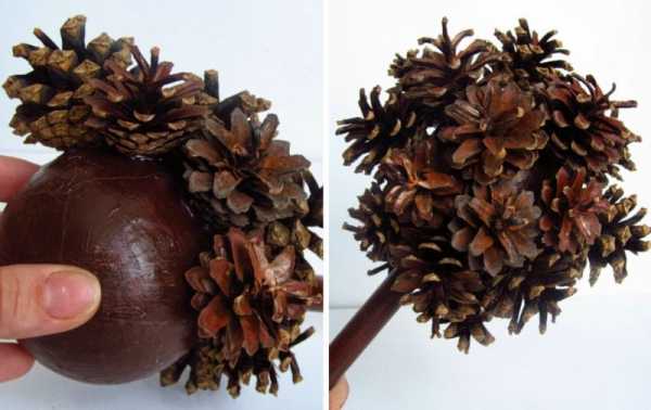 Это позволит долго сохранять поделкам из шишек хорошую форму и не рассыпаться.