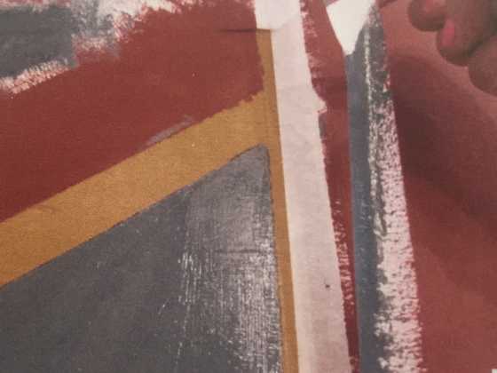 - Акриловой краской покройте сначала поверхность, предназначенную для красного цвета, а затем окрасьте места, предназначенные для синей краски.