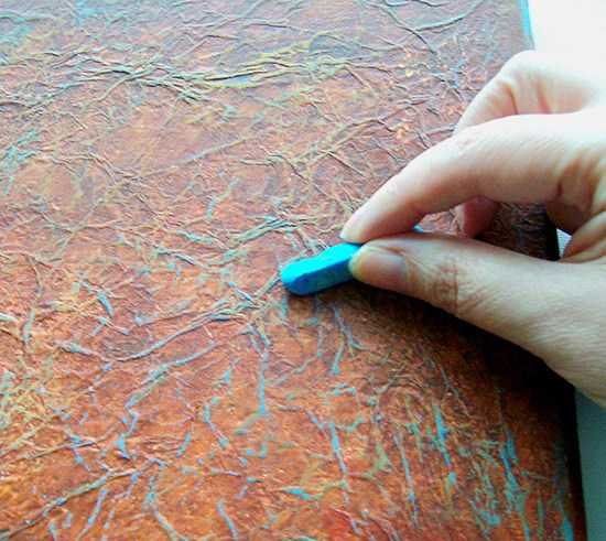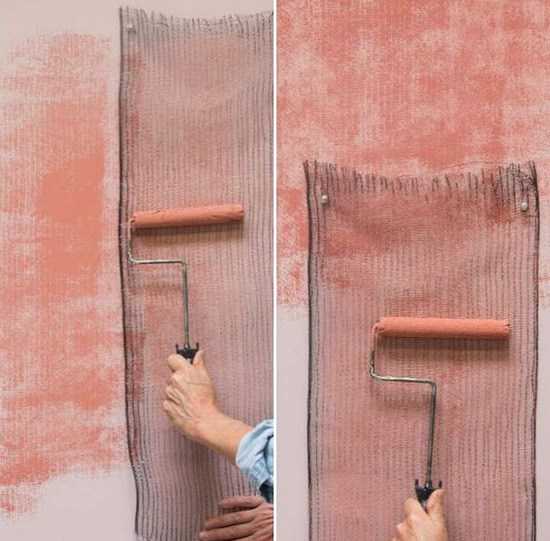 Кстати, вовсе не обязательно покупать какие-то изысканные валики и штампы. На простой малярный валик можно прикрутить ткань и получить оригинальную фактуру.