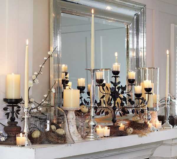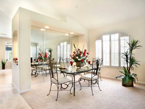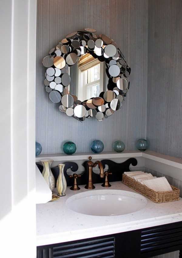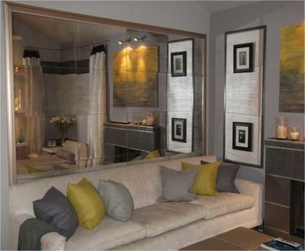 Оригинальный способ не только украсить помещение, но также добавить света и размера пространству. Чтобы зеркало идеально вписалось в интерьер, подберите для него соответствующую рамку: хай-теку – металлическую, а классическому стилю – деревянную с позолотой. Еще можно сделать сплошную зеркальную стену или уложить зеркальные плитки.