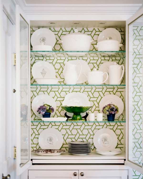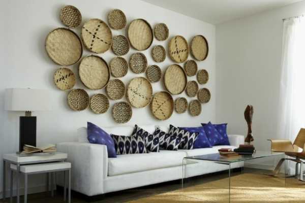 15. Декоративные тарелки, низкие плетеные корзинки, окрашенные потолочные розетки для украшения стен