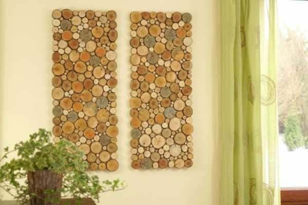 Спилы дерева для декора можно купить в строительных магазинах, а можно просто собрать ветки в ближайшем лесу, чтобы потом распилить их. Идей декора стен со спилами неисчислимое множество! Создавайте из них картины или приклеивайте на стены, образуя необычные композиции; играйте с размером и толщиной спилов; покройте их краской или лаком.