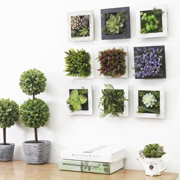 Необычный и еще редко встречающийся в наших квартирах декоративный элемент. Специальная система полива делает такую цветочную композицию практически автономной. Разумеется, если обеспечить достаточный уровень освещенности. Живую стену можно заменить и обычными горшечными растениями на узком стеллаже или открытых полках.