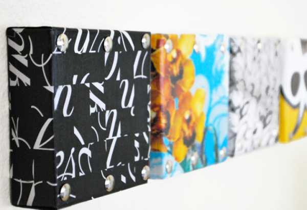Наши увлечения часто бывают преходящими. Вчера кто-то еще собирал марки, а сегодня кляссер просто пылится на полке. Давайте использовать все ненужные и подручные материалы в доме. Можно сделать настенное «мозаичное» панно из тысячи марок или сотни открыток. Прекрасно выглядят изображения, получаемые из наклеенных на холст бисеринок, битых елочных игрушек, кусочков веток и засушенных цветов. Такие холсты раскрашивают акриловыми красками, заклеивают цветной бумагой и фото, расписывают буквами. Кроме панно открытки или детские рисунки можно вешать на леске, закрепленной на паре гвоздиков в стене.