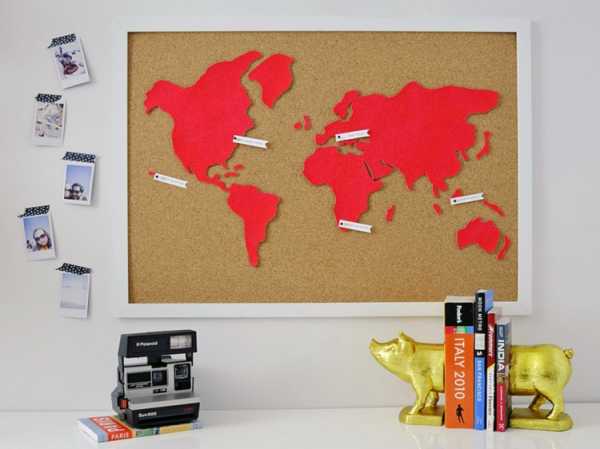 Возьмите холст и выберите слово или надпись. Разместите на холсте английские булавки так, чтобы получился контур букв. А затем обтянуть цветной пряжей булавки, чтобы буквы стали рельефными. Используйте буквы для украшения стен.