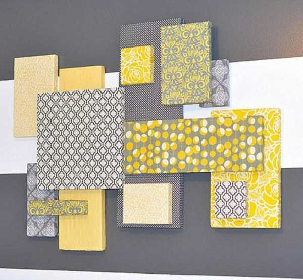 В последнее время появился новый вид декора стен. Это куски ткани, которые крепят непосредственно к поверхности или же крепят на липучки, чтобы полотнища можно было снимать и стирать. Более простой способ украсить стену текстилем – повесить тканевые или ковровые картины. В первом случае это – просто ткань интересной расцветки, натянутая на холст и обрамленная интересным багетом. Во втором – мозаика из кусочков ковровых покрытий.