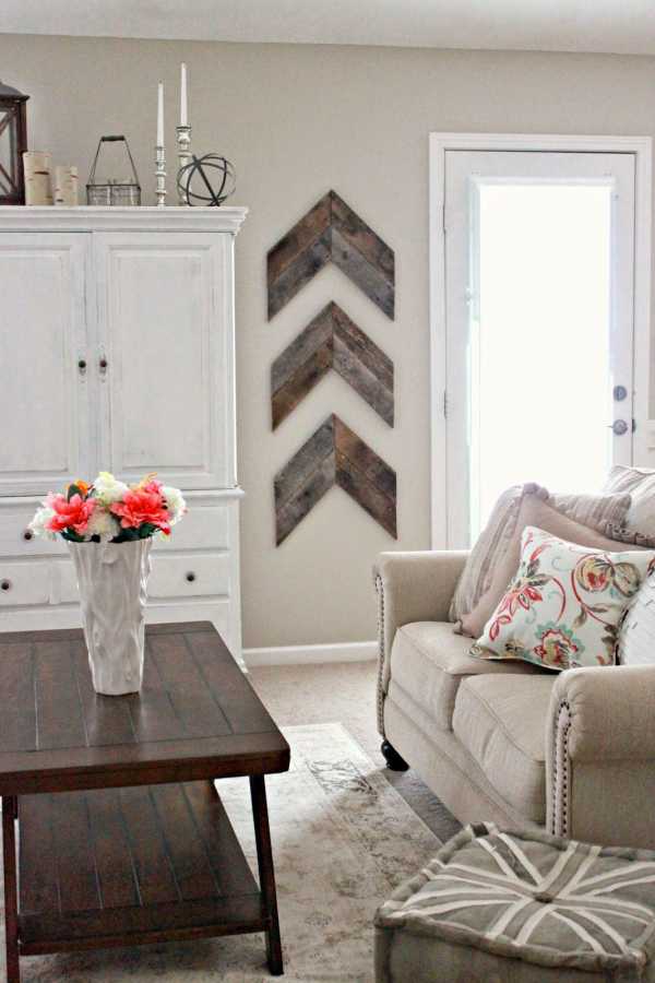 У вас остались деревянные дощечки после ремонта или поделок? Соедините их внахлест, оставив небольшую дырочку посередине. В дырочку можно вставить живые или искусственные цветы, ветки и другие предметы декорирования. Еще один пример простого, но красивого декора.