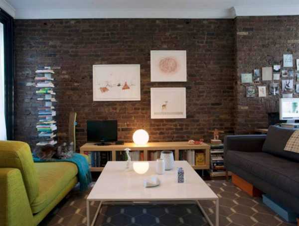 Очень красиво выглядит стена, облицованная декоративным кирпичом, диким камнем, галькой, мозаикой и т.д. Можно украсить комнату фальшкамином из гипса.
