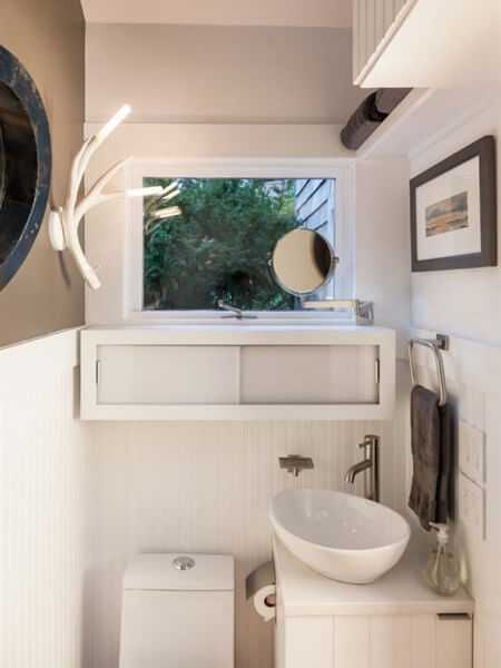 Очень привлекательный домик, современный и отвечающий всем нуждам любого человека, при этом очень компактный и уютный. Гостиная объединена с кухней, на кухонном острове можно и готовить, и кушать. Сводчатый потолок делает комнату более просторной, чем она есть на самом деле. Ванная комната крошечная (2.1м²), но не менее функциональная, с одной стороны раковина и унитаз, с другой – душевая кабина. А на втором этаже – спальня.