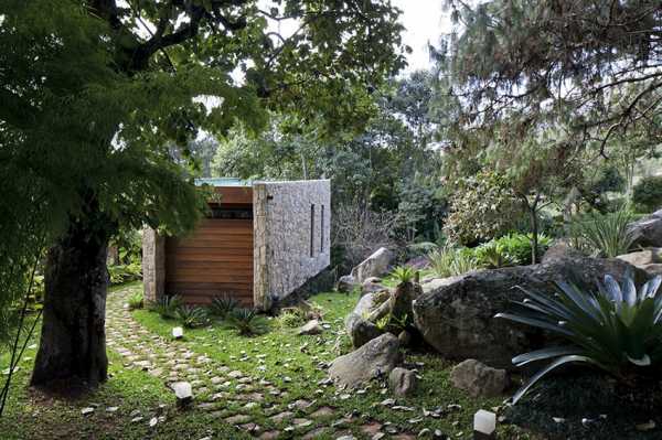 Несмотря на прозрачность стен, можно не беспокоиться о нарушении приватности, небольшой домик со всех сторон окружён высокими деревьями и растительностью.