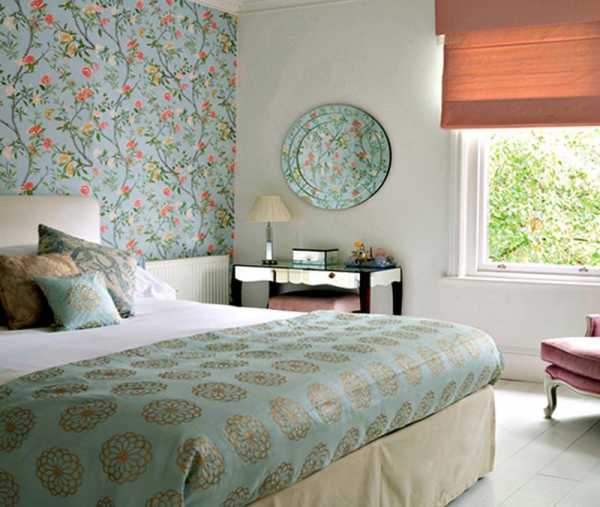 Красивые обои в цветок в спальне