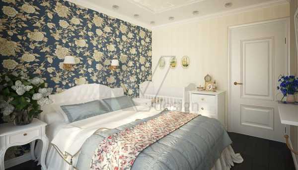 Для работы дизайнеры используют не очень яркие, отличающиеся нежностью тонов обои, покрытые мелким цветком. Чаще всего этими цветами становятся розы, реже – простые полевые цветы.