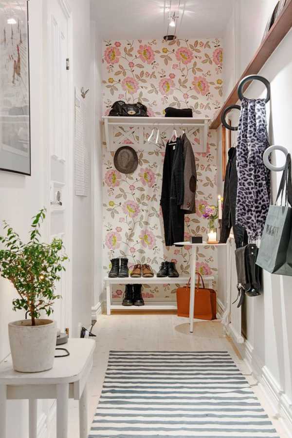 Цветочные обои в интерьере прихожей