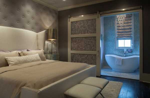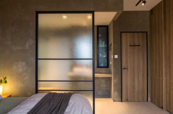 Также перегородку можно смонтировать на всю высоту от пола до потолка. Для этого монтируется металлический профиль, в который встраиваются стеклянные фасадные части. Для облицовки перегородки можно использовать те же материалы, которыми отделана вся спальня.