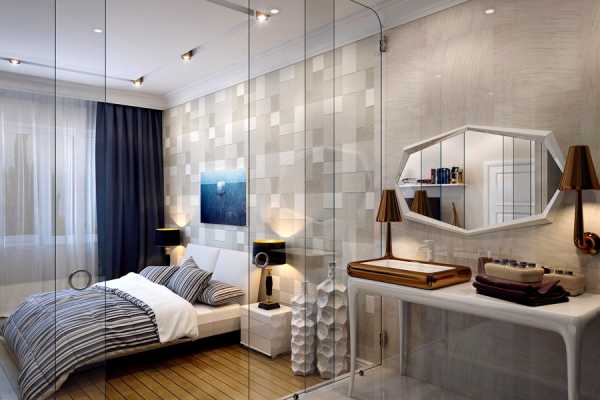 Стеклянная перегородка в спальне – практичное и компактное решение для разделения пространства на отдельные зоны. Существуют готовые стеклянные перегородки разных размеров.