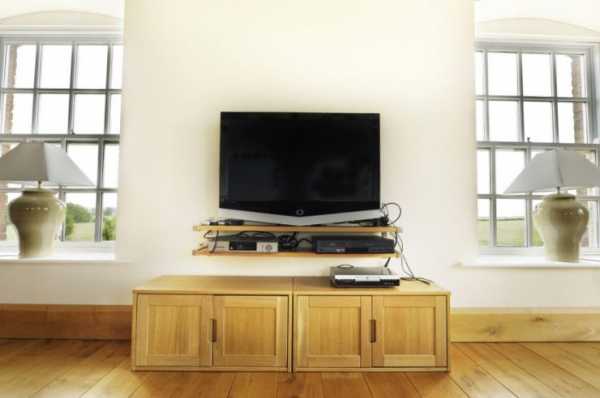 Тумба – это классический вариант, который известен еще с прошлого века. Но, так как сейчас уже не используются массивные модели телевизоров, конструкция тумб значительно изменилась. Они стали более вытянутыми в длину и менее глубокими. Они рассчитаны на тонкую панель, которая может находиться на такой узкой поверхности, и обладает достаточной устойчивостью.