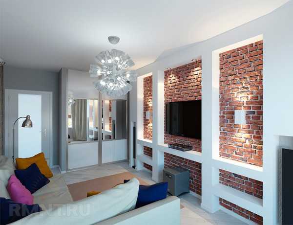 Используют точечные лампы в нижней или верхней части ниши. Хорошо смотрится диодная подсветка в роли светомузыки. Приятно освещение, направленное сверху вниз. Используют декоративный камень, фотообои или покрывают поверхность конструкции краской разнообразных оттенков, гармонирующих с цветовым тоном стены. Обустраивают стену нишами для колонок телевизора и другой аудиосистемы. Под плазменной панелью имитируют камин. Выделяют место для полок под красивые вещицы – шкатулки, статуэтки, книги в оригинальных переплетах.