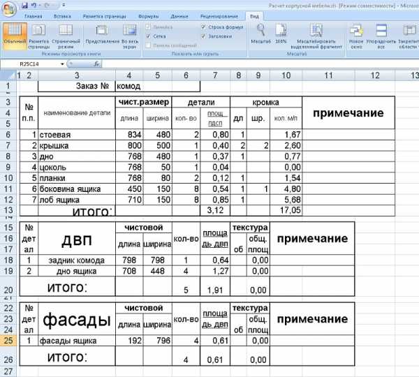 Карта раскроя на комод