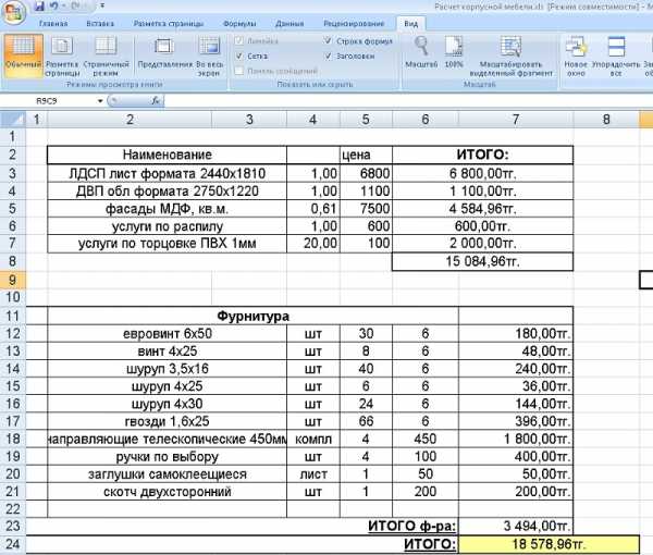 По смете комод собственного производства обойдется вам примерно в следующую сумму