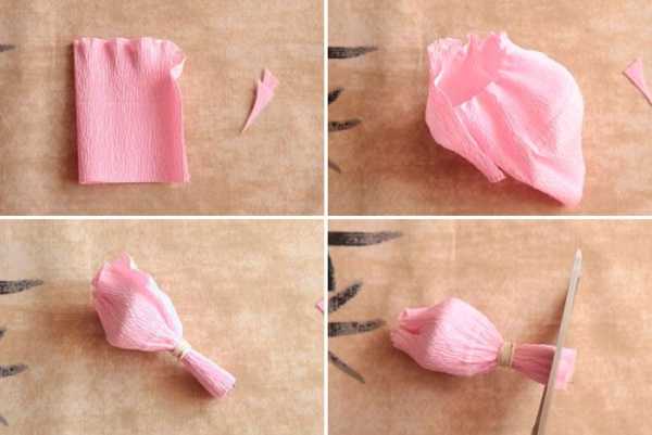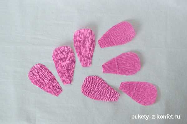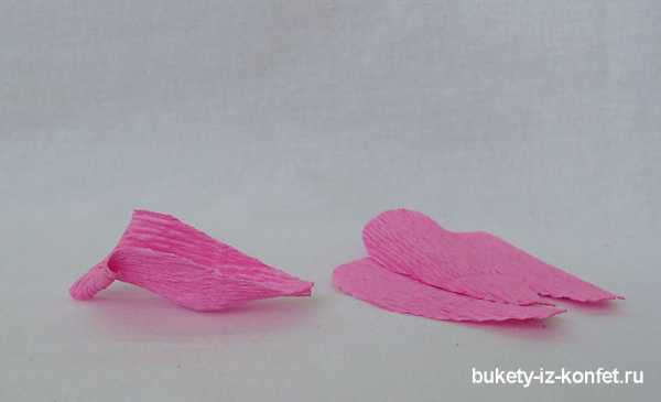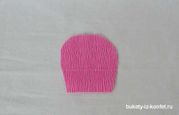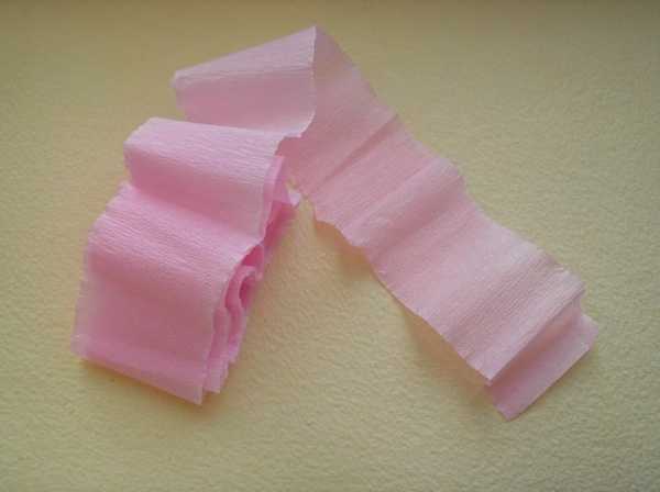 - Вырежьте прямоугольник из розовой гофрированной бумаги.