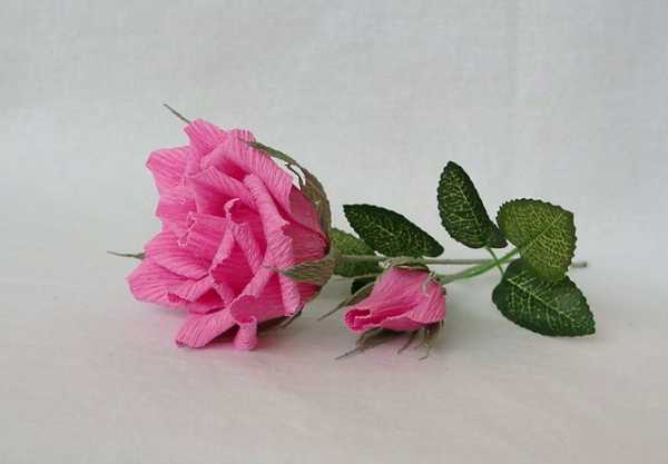 Роза из гофрированной бумаги своими руками готова, приступаем к бутону.