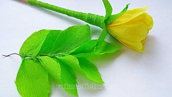 - Обмотайте стебель зелёной гофрированной бумагой.