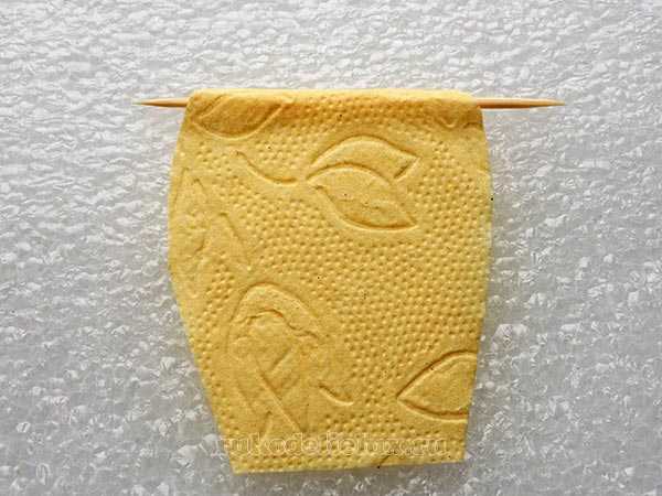 После этого продолжаем снова плотно закручивать салфетку, формируя стебель.