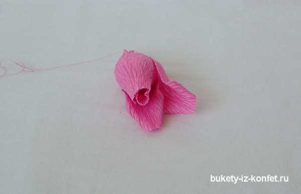 - Сделайте ложбинку для конфеты, вытягивая лепесток в центре.